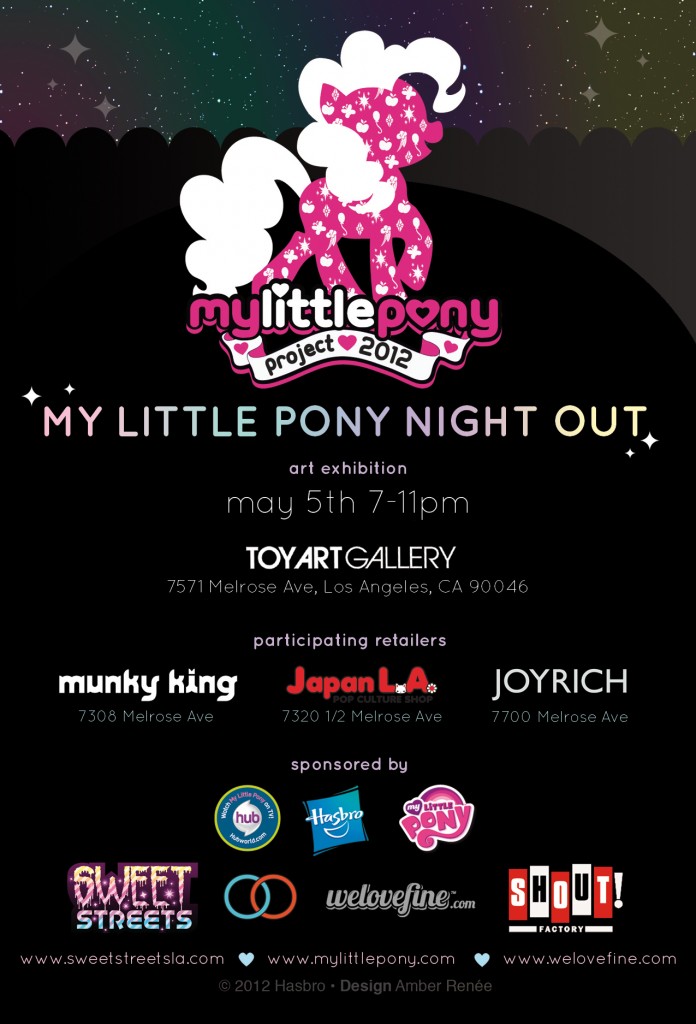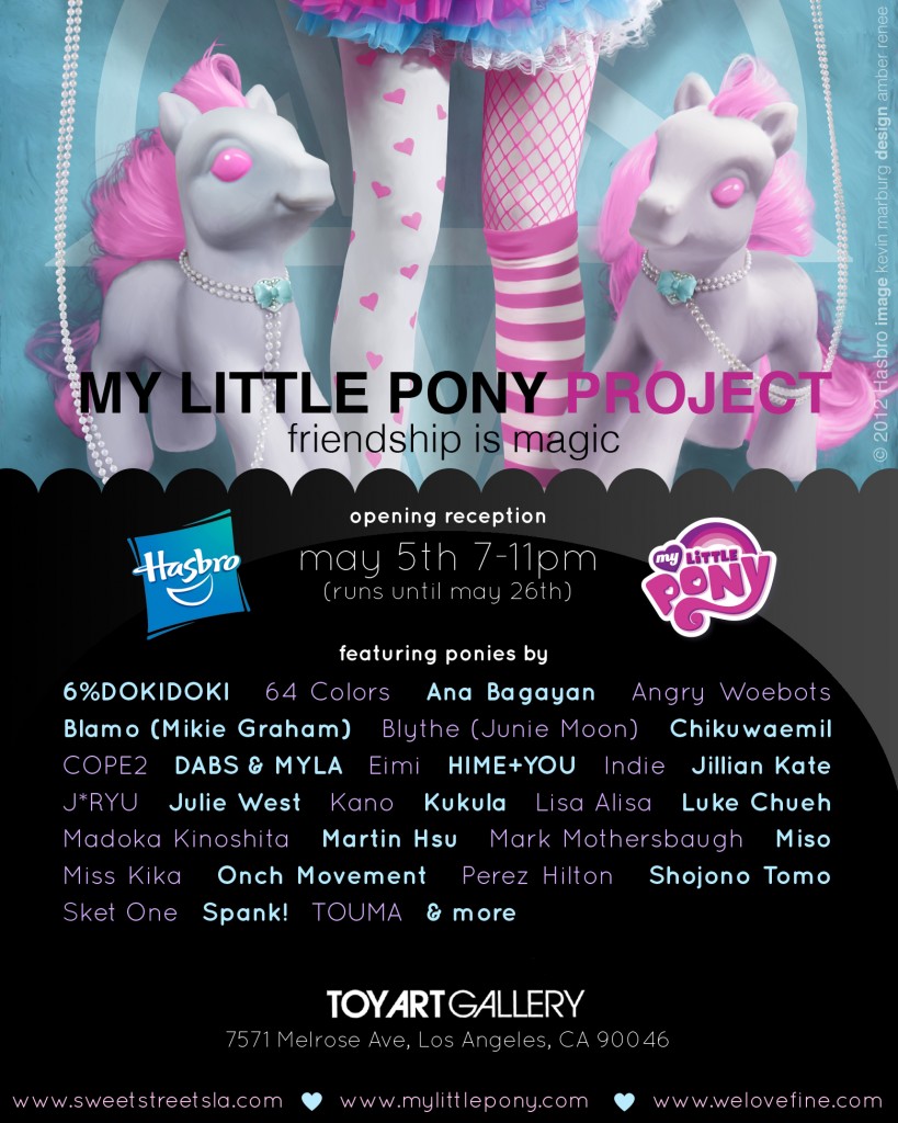 MY LITTLE PONY Project is a global, year-long celebration of MY LITTLE PONY: Friendship Is Magic! This special charitable art exhibition will debut in Los Angeles before traveling to New York and Tokyo, showcasing stunning 18″ MY LITTLE PONY figures customized by international fine artists.